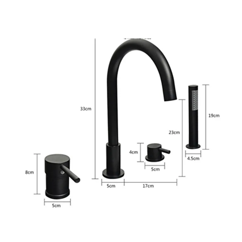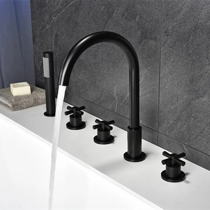 Black Waterfall Bathtub mixer with brass hand shower double function black bath faucet deck mounted
